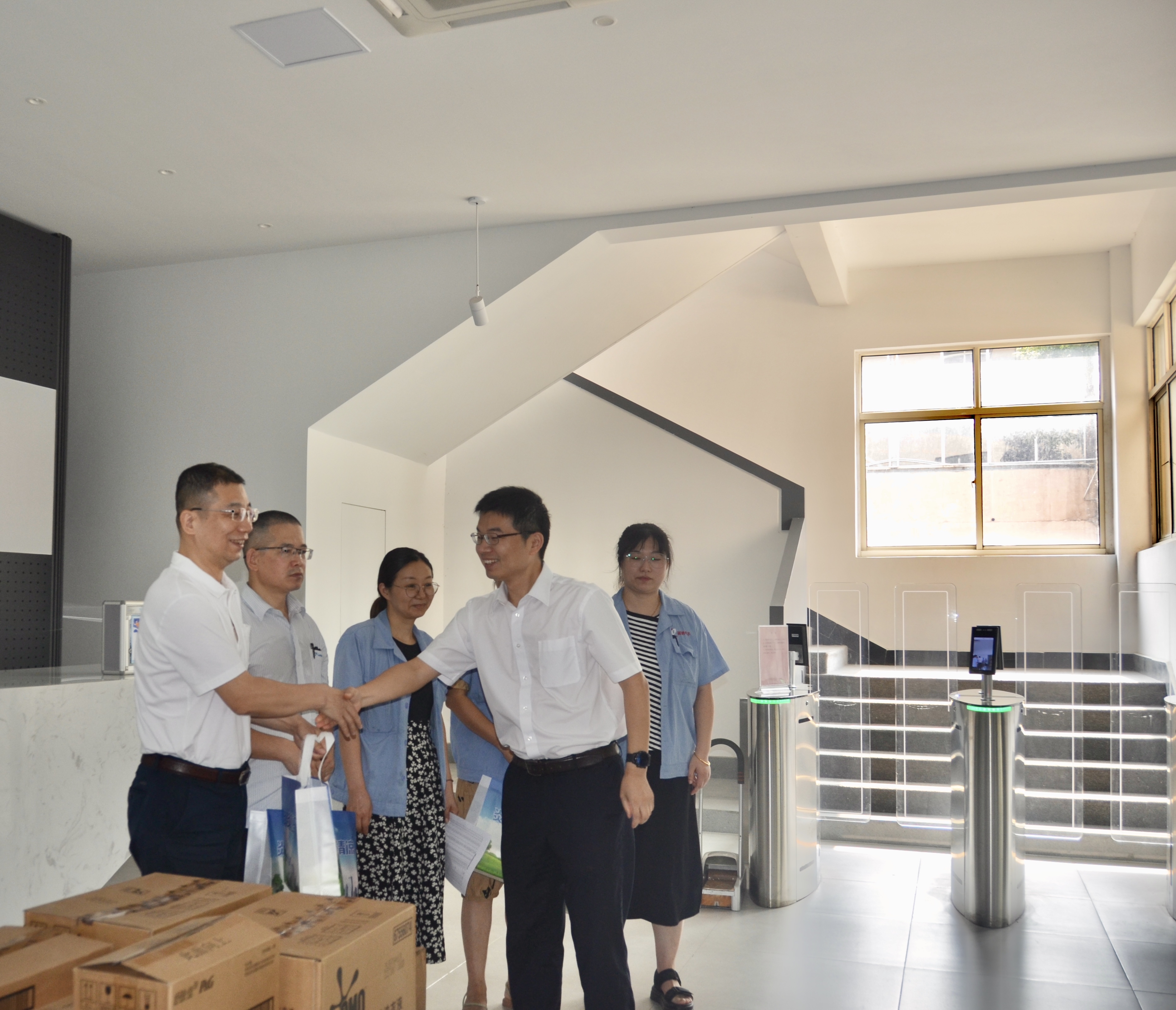 “炎炎夏日送清涼,濃濃關(guān)愛(ài)沁人心。”近日,徐舍鎮(zhèn)黃鎮(zhèn)長(zhǎng)攜鎮(zhèn)總工會(huì)及相關(guān)領(lǐng)導(dǎo)一行來(lái)我司開(kāi)展送清涼活動(dòng),走訪慰問(wèn)奮斗在高溫崗位的一線員工,為他們送去了防暑降溫用品,讓他們?cè)诳崾钪懈惺艿揭唤z清涼。活動(dòng)中,徐舍鎮(zhèn)相關(guān)領(lǐng)導(dǎo)及工會(huì)向奮戰(zhàn)在一線的勞動(dòng)者表示由衷的感謝和問(wèn)候,與員工代表們親切交談,叮囑大家注意勞逸結(jié)合,防暑降溫,確保安全生產(chǎn)工作有序進(jìn)行。開(kāi)展“夏送清涼"的活動(dòng),是工會(huì)關(guān)心職工生活,保障職工權(quán)益的重要舉措,我司把防暑降溫工作作為夏季重點(diǎn)工作來(lái)抓。切實(shí)關(guān)心職工身體健康和勞動(dòng)安全。把防暑降溫工作和勞動(dòng)安全保障落實(shí)到各高溫崗位的職工,讓他們?cè)谘籽紫娜崭惺艿轿镔|(zhì)、精神的雙清涼。